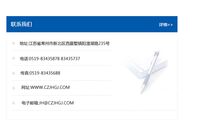 傳真:0519-83435688    郵編:213135    網址:WWW.czjhgj_com.rongmazs.com    電子郵箱:JH@czjhgj_com.rongmazs.com